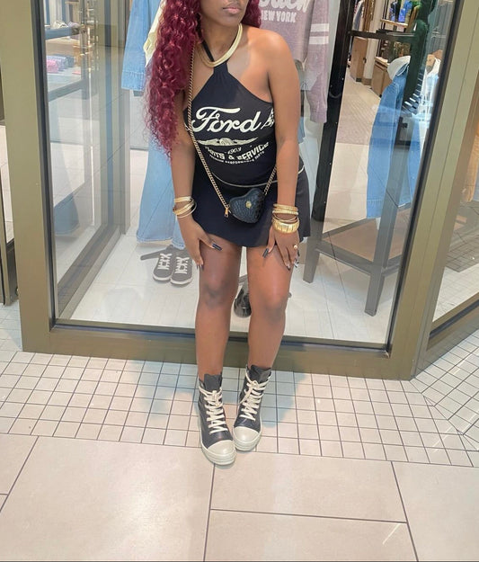 GVCH cropped varsity jacket X Shark ankle boots